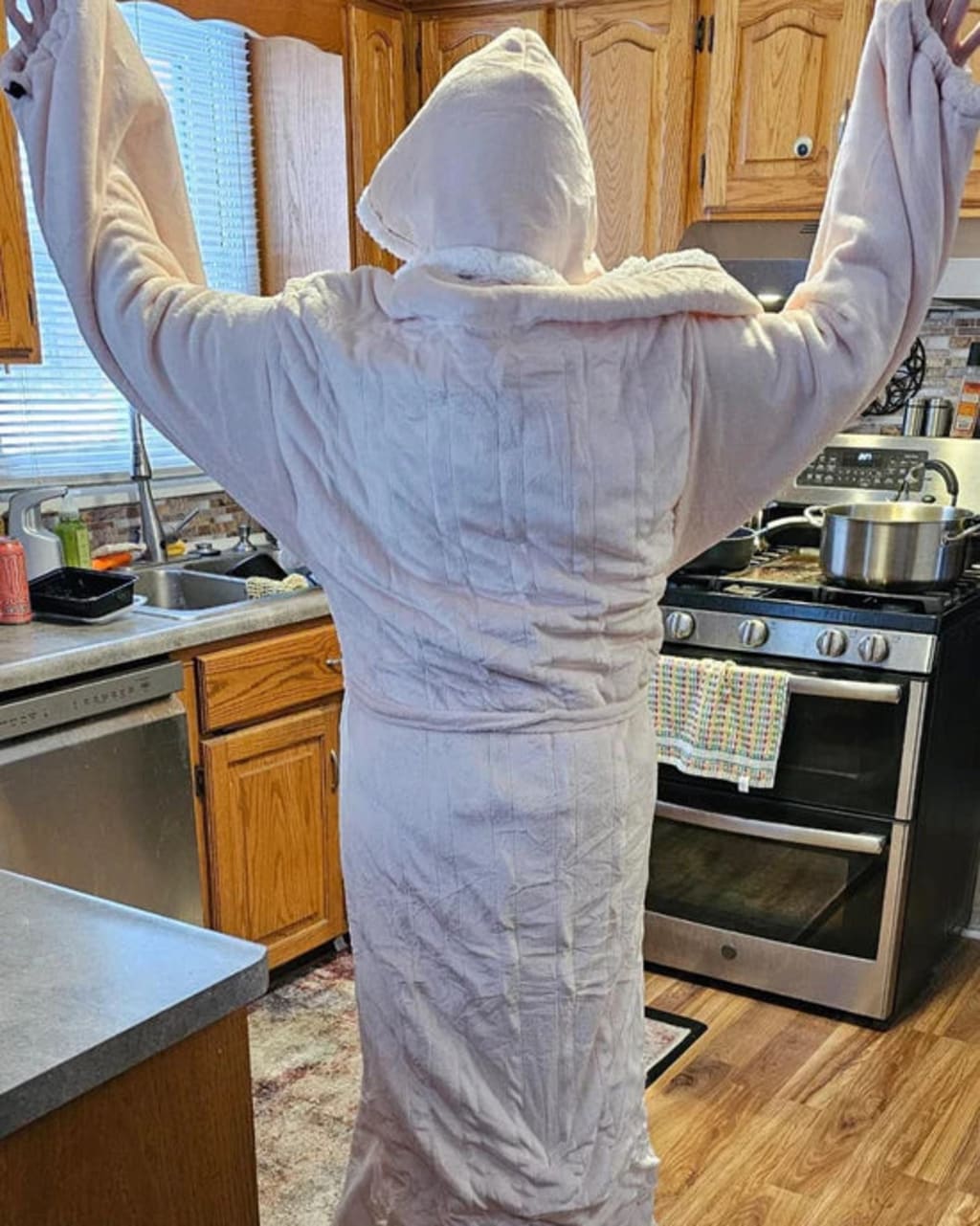 Indulge in ultra-soft plush material from head to toe; experience rapid heating in under three minutes, six customizable settings, and an integrated hood for total warmth.