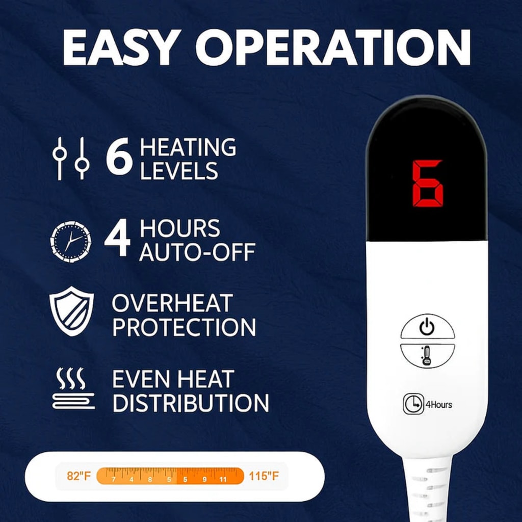 Use the easy-to-operate controller to cycle through six temperature levels for personalized comfort.